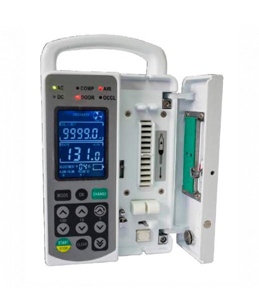 La bomba peristáltica es la fuente de energía con múltiples sensores para controlar la bomba de infusión y tiene variedad de funciones de alarma. |